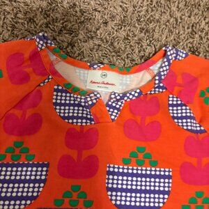 Hanna Andersson Floral Print Dress 10 140 CM Short Sleeve A Line Pullover Orange