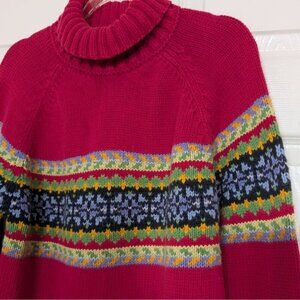 Hanna Andersson Floral Turtleneck Sweater Womens Size Medium Pink Fair Isle