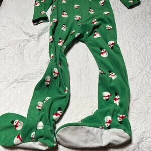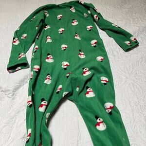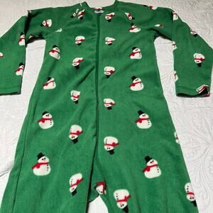 Hanna Andersson one piece union suit romper footed fleece pajamas in green snowman print. Very good condition, light wear. Size 110 / 5.