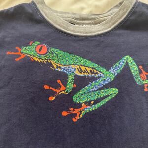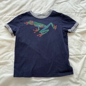 Hanna Andersson Frog Graphic Ringer Tee Boys Navy Blue Shirt Size 100cm/3T