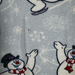 Hanna Andersson pjs size 6/7. Frosty the Snowman print. Good condition, except for two small pulls/holes on front of one leg (see pics). Smoke free home.