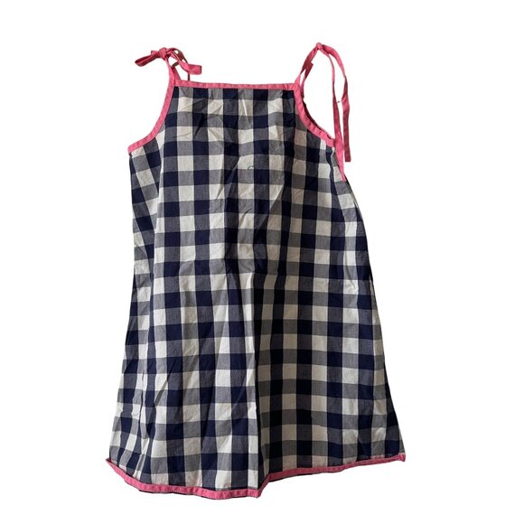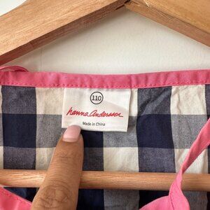 Hanna Andersson Gingham Poplin Sundress 5T 110 CM in Navy blue with pink trim.