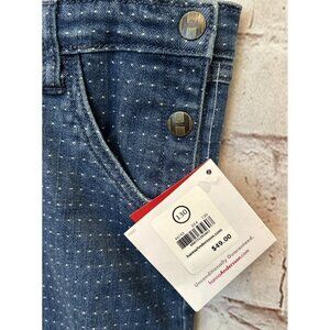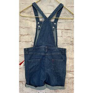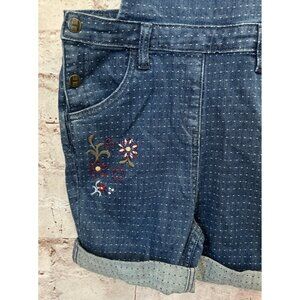 Hanna Andersson Girls 130/ 8 Denim Bib Shortalls Overalls Floral Embroidered Dot