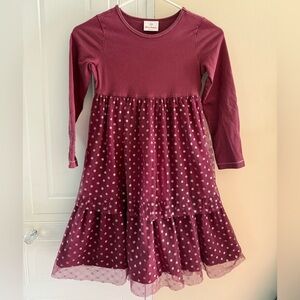 Hanna Andersson Girls Burgundy Polka Dot tulle Dress size 130 (8)
