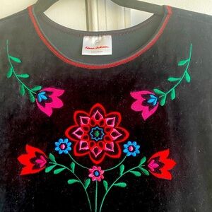 Hanna Andersson Girls Embroidered Tiered Velour Holiday Dress Size 14/16 160