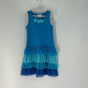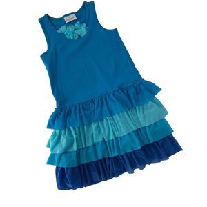 Hanna Andersson Girls Fizzy Sundress Blue Tiered Ruffle Dress size 6
