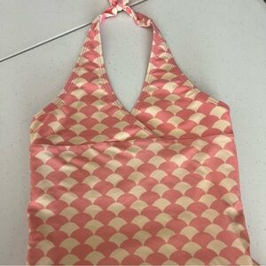 Hanna Andersson Girls Halter Swimsuit One Piece Fish Scale Skirted PinkCream 140