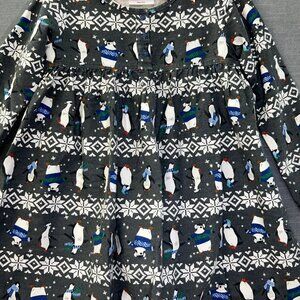 Hanna Andersson Girls' Holiday Nightgown Sz 4T Penguin & Snowflake Pattern Gray