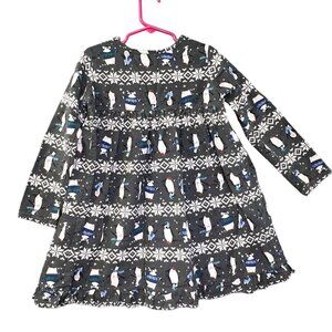 Adorable and cozy holiday dress featuring a playful penguin and snowflake pattern. Ideal for festive occasions and winter wear.