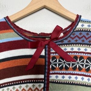 Hanna Andersson Girls Midi Dress 10 Storyteller Fair Isle Patchwork Cabin Stripe Longsleeve Bow