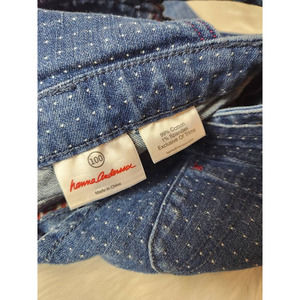 Hanna Andersson Girls Shortalls Blue White Dot Design Embroidered Floral Denim 4