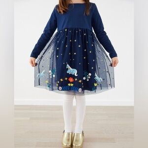 Hanna Andersson | Girl's Unicorn Embroidered Long Sleeve Tulle Dress Size US 10