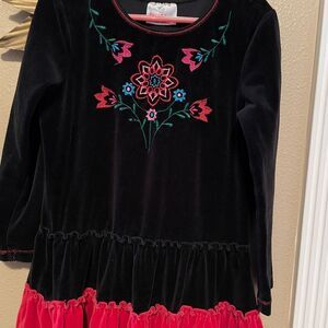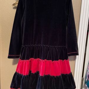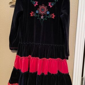 Hanna Andersson Girls Black and Red Velvet Embroidered Holiday Dress 6/7T