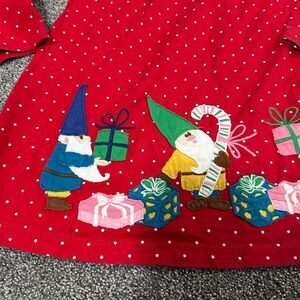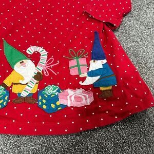 Red with white polka dots. Buttons in back. Gnome tomte appliqué accent. Dress. Great condition for age. HSA HTF. Scandinavian theme. Perfect for Christmas and holidays.