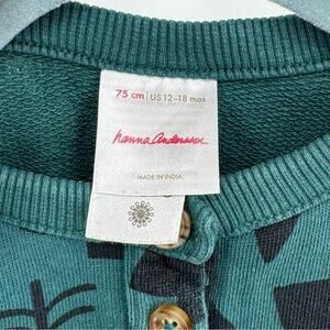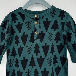 Hanna Andersson Green Henley Romper Tree Print 12-18 Months