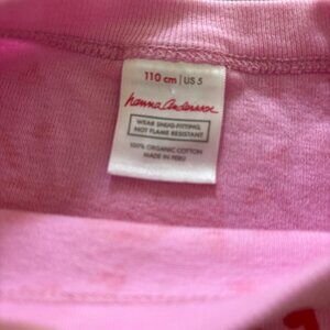 Hanna Andersson Heart Pajama Set Size 110 or 5. Gently used, some wash wear, no holes, one marker spot on back of leg as shown.