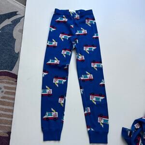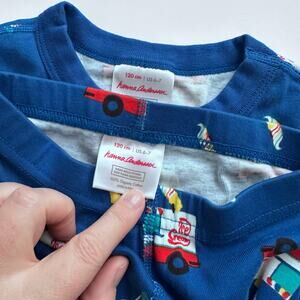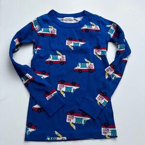 Super cute Hanna Andersson size 120 (US 6/7) long john pajamas. These 2-piece pajamas are made of soft organic cotton and feature a fun ice cream print on a blue background. They are in excellent condition and ready for a new home! Perfect for a cozy night's sleep or a fun pajama party. Your little one will love these adorable PJs!