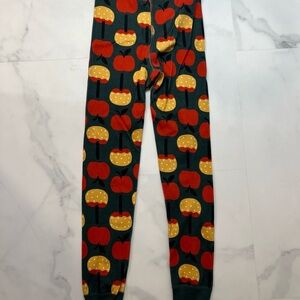 Cozy pajama bottoms with playful apple print. Elastic waistband for comfort. Perfect for bedtime fun.