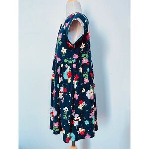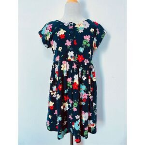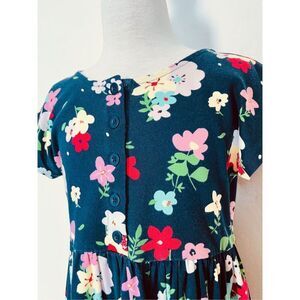 Hanna Andersson Kids Girls 7/8 (130) Navy Knit Floral Dress with Button Plaquett