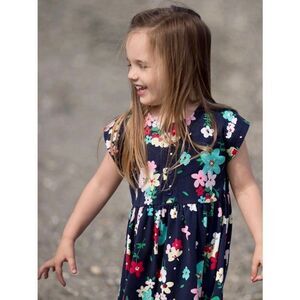 Hanna Andersson Kids Girls 7/8 (130) Navy Knit Floral Dress with Button Plaquette