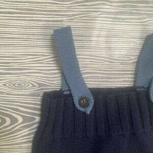 Hanna Andersson size 85 cm or 2T. Blue knit overalls. These are high waisted. Would make an adorable outfit for Fall , winter, or Christmas.