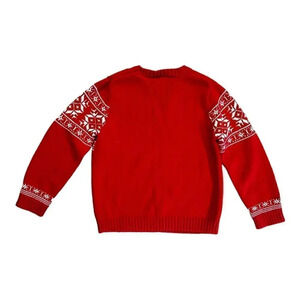 Adorable crewneck sweater from Hanna Andersson. Bright red color with geometric “snowflake” pattern across the chest and arms.