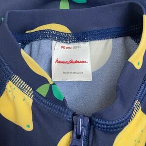 Hanna Andersson Lemon Print One-Piece Rashguard Swimsuit 3T Unisex UPF 50+