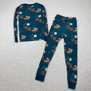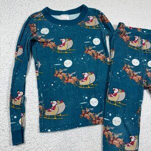 Hanna Andersson Long John Pajamas Organic Cotton Santa Sleigh Ride Blue US 6/7