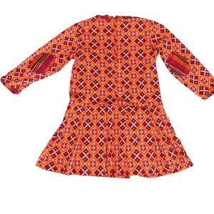 Hanna Andersson Long Sleeve Orange Pattern Pleated Dress Size 4 100 Cotton