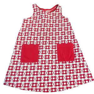 This retro-inspired Hanna Andersson dress is full of charm! Features a bold red and white floral print, bright red patch pockets, and an adorable racerback bow detail. Twirl-worthy and perfect for summer fun!