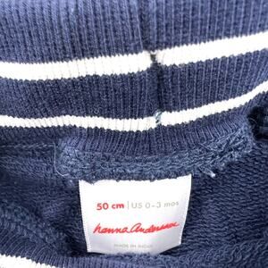 Hanna Andersson baby two piece set, hoodie zips up with bear ears hood and harem style pants, navy blue. Size 50, 0/3m. VGUC.