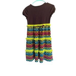 Hanna Andersson Navy and Multi colored Rainbow Heart Capped Sleeve Sweater Dress 10. Ruffed tiered multi colored heart skirt with Navy bodice.