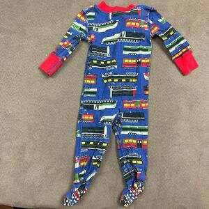 Hanna Andersson Newborn Baby Boy Blue Train Zip Up Footie Sleeper PJs Pajamas