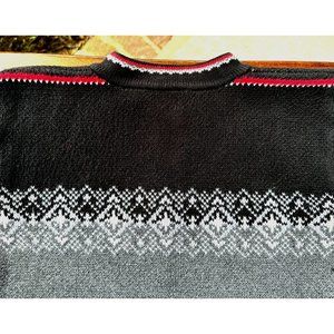Sweater shows some wear from normal wash, wear on upper front, upper back & sleeves