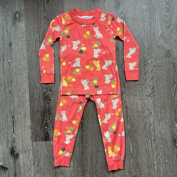 Excellent condition with no signs of wear, stretching or fading.Your little one will roar with delight in this adorable Hanna Andersson Lion King pajama set! Featuring a vibrant orange color and playful Lion King design, these long john pajamas are perfect for cozy nights and sweet dreams. Made with Hanna Andersson's signature soft and durable cotton, these pajamas are gentle on delicate skin and built to last.