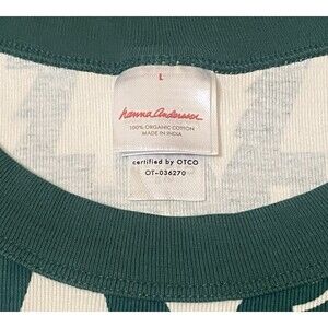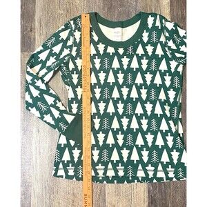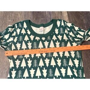 Get cozy for the holidays in this Hanna Andersson womens pajama set, featuring a cheerful green tree print perfect for Christmas mornings or winter lounging. The set includes a long-sleeve top (size Large) and matching pants (size Medium) both made with Hannas signature soft, premium cotton for ultimate comfort and durability.