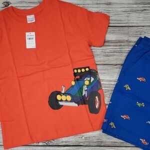 Hanna Andersson Organic Cotton Summer Set T-Shirt & Embroidered Shorts Race Cars