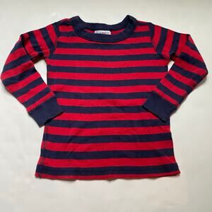 Hanna Andersson red & blue stripe organic cotton long sleeve pajamas. Size 90 / 3. Washed cold & hung dry. Made in Peru.