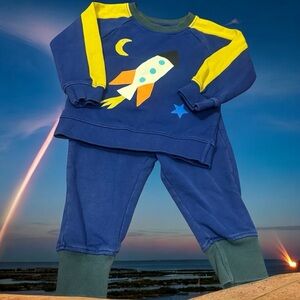 Hanna Andersson Outer Space Rocket Ship Sweat Pant Set Colorblock Size 2T
