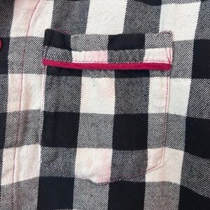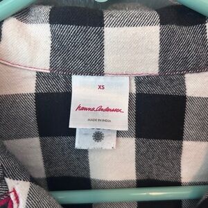 Size extra small Hanna Andersson pajama top. Slight redness on the pocket from where the red trim bled in the laundry. In good used condition!! Perfect for Christmas!