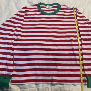 Hanna Andersson Pajama Top Small Red White Striped Green Trim Organic Cotton