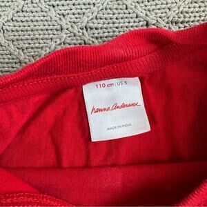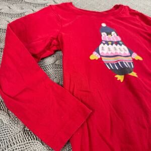 Overall great condition bold red {Hanna red} long sleeved holiday art tee by Hanna Andersson. A cute and cozy Penguin on the front. Super soft. Size 5/110.