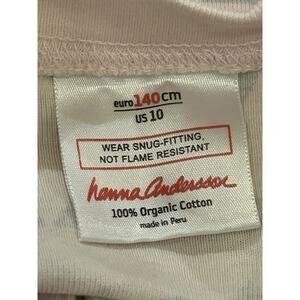 The Hanna Andersson Pink Pajama Set in Girls size 10 is a cozy and cute sleepwear option for young girls. Featuring long sleeves and a vibrant pink color, this pajama set is designed for comfort and style. Made by the reputable brand Hanna Andersson, known for high-quality children's clothing, this set is sure to keep your little one warm and snug during bedtime hours. Perfect for adding a pop of color to her sleepwear collection, this pajama set is a practical and adorable choice for any young girl.