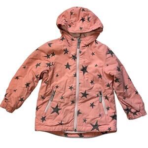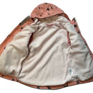 Hanna Andersson, jacket, outerwear, fleece, stars, star print, pink, white, kids, girl, winter, fall, hood, hoodie, zip-up, size 110, size 5
