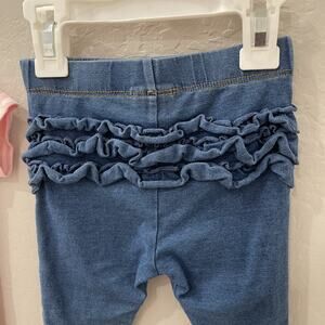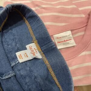 Hanna Andersson shirt size 70 (6-12 months) paired with Cat & Jack bottoms size 6-9 months). Pink and white stripe short sleeve shirt is super soft and looks super cute with the ruffle jeggings. Very good condition.