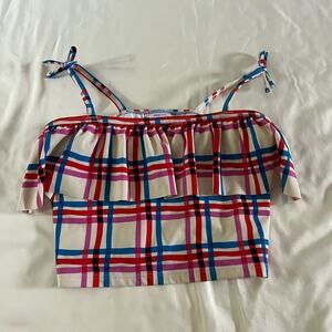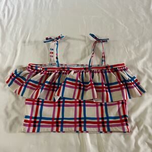 Hanna Andersson Plaid Ruffle Tie Detail Tankini Top Girl’s 12