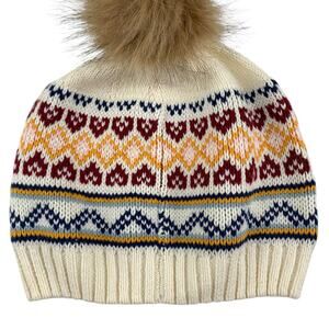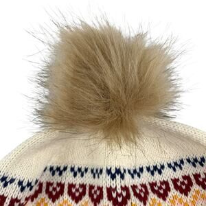 Hanna Andersson Pom Pom Hat Knit Beanie Cream Faux Fur Girls M