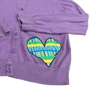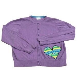 Hanna Andersson Purple Blue Embroidered Heart Cardigan School Play Girl's 12