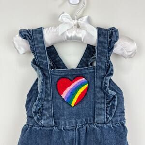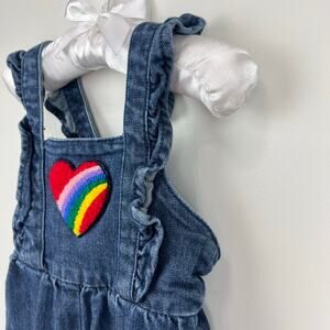 Hanna Andersson Rainbow Heart Ruffle Denim Overalls 85 cm 2T