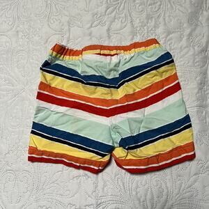 Hanna Andersson Sunny Days and Getaways Poplin Shorts in Multi Wave. Pull on style bright rainbow striped shorts. Good condition, small mark on front otherwise little wear. Size 100 / 4.